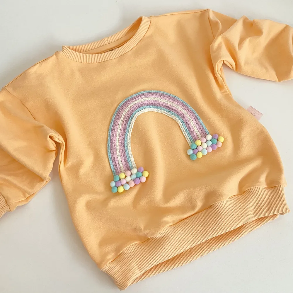 bluza dziecięca z aplikacją tęczy i kolorowymi pomponikami