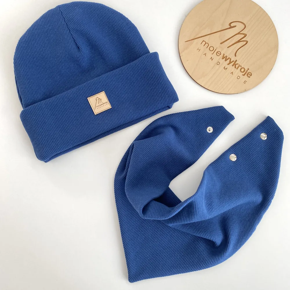 Zestaw czapka beanie (podwinięta) i chusta regulowana zapinana na napy to wygodny, praktyczny komplet dla dziecka na chłodniejsze dni. Komplet dziecięcy handmade od Moje Wykroje szyty jest ręcznie z wysokiej jakości materiałów, bezpiecznych dla delikatnej skóry. Czapka dzięki podwinięciu pozwala na regulację wysokości i lepsze dopasowanie do głowy, a chusta na napy umożliwia idealne dopasowanie osłony szyi.