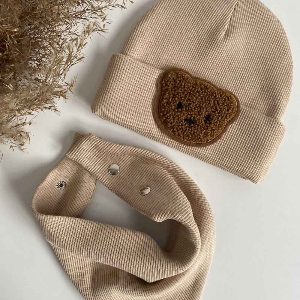 Miękka, elastyczna dzianina sprawia, że zestaw dobrze dopasowuje się do kształtu głowy i szyi, nie uciska i skutecznie chroni przed wiatrem oraz chłodem. To praktyczne rozwiązanie na spacery, do przedszkola i szkoły oraz codzienne aktywności na świeżym powietrzu. Spójny wygląd czapki i chusty tworzy modny, funkcjonalny komplet.