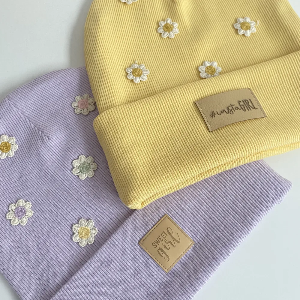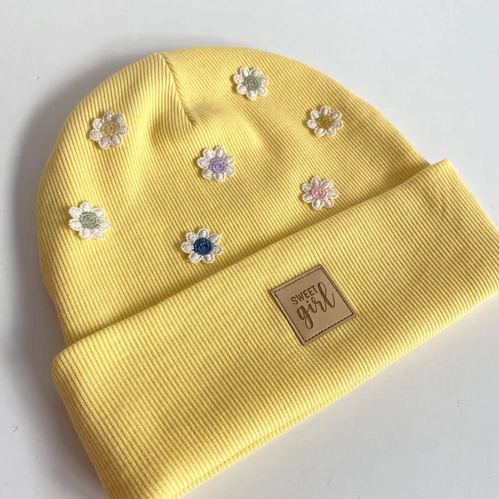 Czapka typu beanie (podwinięta) z uroczymi kwiatkami z dzianiny prążkowanej. Dzięki wywinięciu, można regulować wysokość czapki i dopasować ją jeszcze bardziej do główki. To wyjątkowy dodatek, który łączy wygodę z oryginalnym stylem. Wykonana z wysokiej jakości materiałów, jest miękka, ciepła i idealnie dopasowana do głowy. Dzięki precyzyjnemu wykonaniu i pasji do rękodzieła, każda czapka staje się unikalnym elementem w Twojej garderobie. Idealna do codziennych stylizacji, na specjalne okazje, a także jako uroczy prezent. Dostępna w różnych kolorach, łatwo dopasujesz ją do swojego stylu.