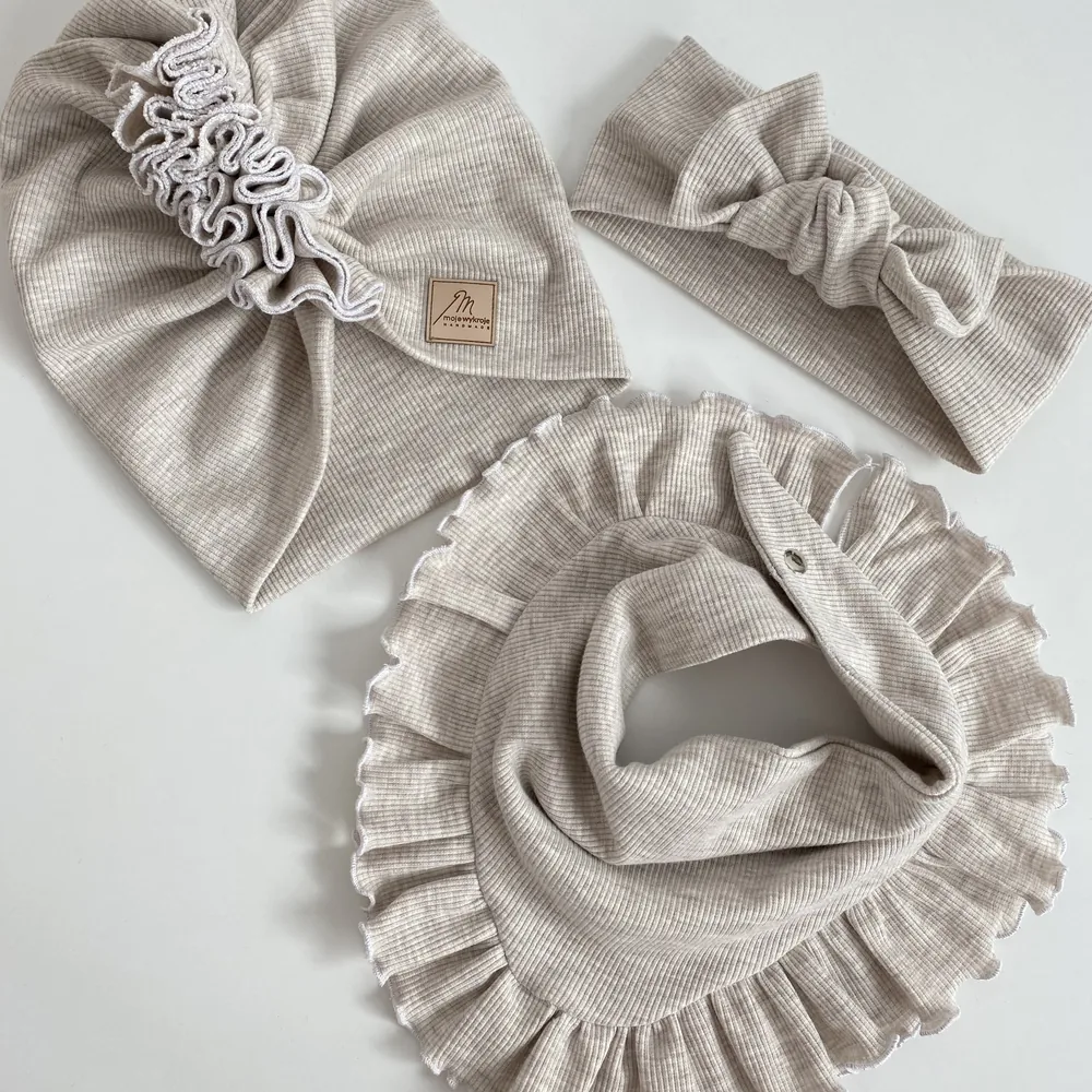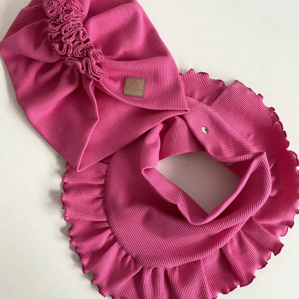 Zestaw turban i chusta z falbanką to wyjątkowo stylowy i wygodny komplet dla dziecka na chłodniejsze dni. Komplet dziecięcy handmade od Moje Wykroje szyty jest ręcznie z wysokiej jakości materiałów, bezpiecznych dla delikatnej skóry. Turban doskonale dopasowuje się do głowy, a chusta z falbanką nie tylko chroni szyję przed wiatrem i chłodem, ale również stanowi piękny element stylizacji.